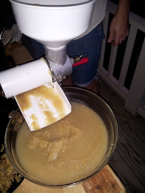 The process went a little something like this: after dicing and boiling up apples we ran them through this beast of a device...